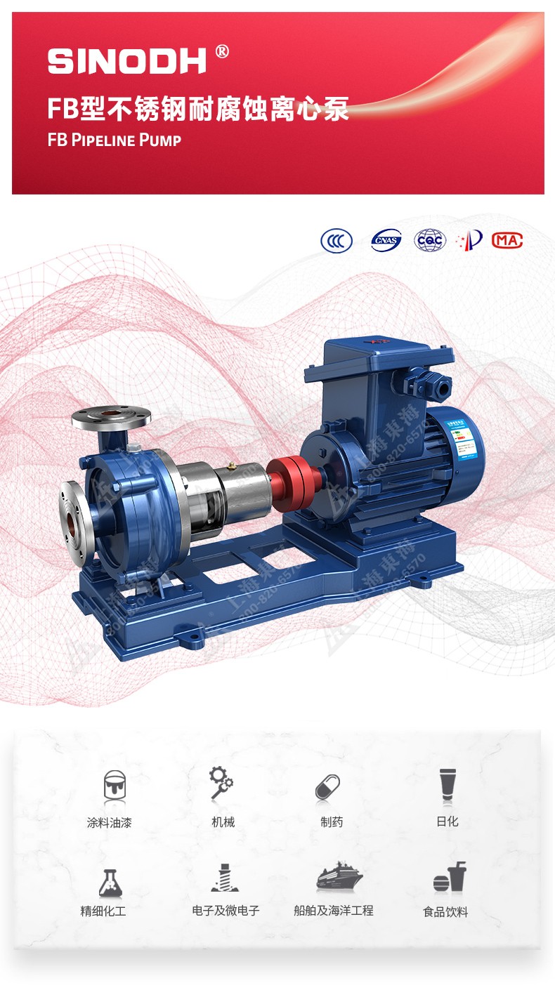 FB型不锈钢单级单吸悬臂式耐腐蚀离心泵,为星空在线平台,星空(中国)自主研发生产。本系列产品适用于输送不含固体颗粒,有腐蚀性液体。被输送介质温度为-20℃~200℃,泵的进口压力不能大于0.2MPa,广泛用于石油、化工、冶金、合成纤维、制药、食品、酿造等工业部门,也可供工矿、企业及城市供水、排水之用。